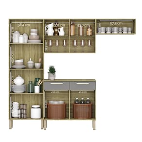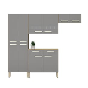 Cozinha (Com Balcão) 6 Portas 2 Portas de Vidro Nala - SSX Multicoisas - Cinza