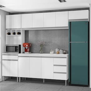 Cozinha com Balcão e Tampo 160 cm Andréia Branco Brilho - AJL