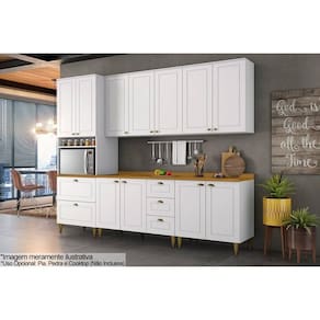 Cozinha Completa Americana c/ Pés 7 Peças (2Aéreos+2Balcões+1Paneleiro+2Complementos) C5P60 Branco - Henn Abaixo segue os produtos que compoem o KIT: