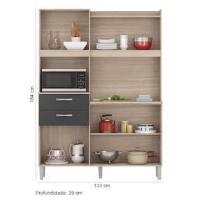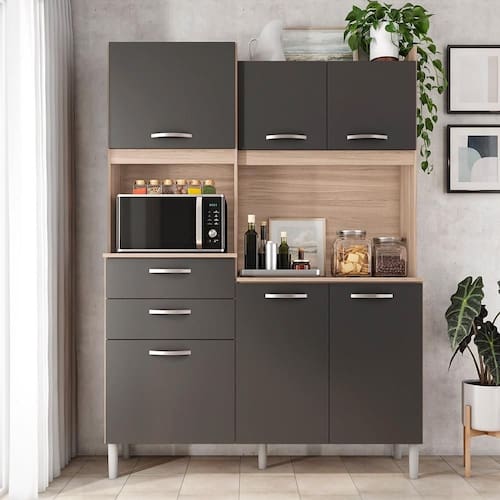 Cozinha Compacta 06 Portas 02 Gavetas Harmonia Avena Grafito Demóbile - Grafite