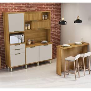 A Cozinha Compacta Loft Imperatriz da Nesher é a combinação perfeita entre elegância e funcionalidade para a sua cozinha. Com ampla capacidade de armazenamento, possui 6 portas, 2 gavetões e 2 nichos, mantendo os seus utensílios, panelas, pratos e muito mais organizados, além disso, conta com um espaço exclusivo para microondas ou forno, facilitando o acesso. Sua estrutura em MDF de alta qualidade, garante durabilidade e resistência, suas portas e gavetas contam com corrediças telescópicas e dobradiças anti-impacto, proporcionando um fechamento suave e silencioso, evitando impactos indesejados. Com detalhes ripados e sua combinação de cores Marrom Freijó e Off White, adicionam um ambiente elegante, versátil e moderno, combinando com diversos estilos de decoração. A Cozinha Compacta da Nesher, conta também com um belíssimo Painel de Ilha, com detalhes ripados, complementando perfeitamente o ambiente. Não perca tempo e transforme sua cozinha em um verdadeiro espaço acolhedor. Aproveite!
