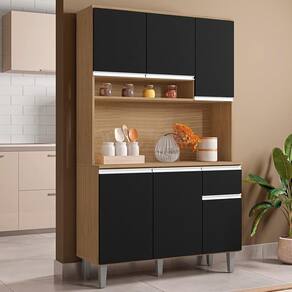 A Cozinha Compacta 105cm Com 6 Portas 1 Gaveta Márcia Preto/Amêndoa, da AJL Móveis, foi desenvolvida para ambientes de pouco espaço se tornando perfeita e completando o que faltava.