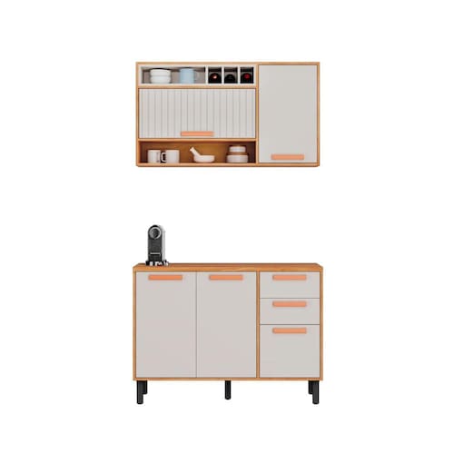 Com apenas 120cm de largura, a Cozinha Compacta Nápoles da Itatiaia é a solução perfeita para quem busca um ambiente funcional, elegante e com aproveitamento inteligente do espaço. Seu visual contemporâneo, aliado ao acabamento Off White e Cinamomo, valoriza qualquer tipo de cozinha, seja em casas, apartamentos ou espaços gourmet.