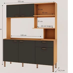Estrutura projetada para acomodar seu micro-ondas. Acabamento da Gaveta: Pintura UV Escala de Brilho da Gaveta: Fosco Material do Puxador da Gaveta: ABS Acabamento da Porta: Pintura UV Escala de Brilho da Porta: Fosco Material do Puxador da Porta: ABS Acabamento dos Pés: Pintura Acompanha Rodapé Decorativo: Não Acompanha Tampo: Não Altura dos Pés: 17 cm Altura Máxima dos Pés: 17.0000 Ambiente Principal: Cozinha Balcão Suporta Pia: Sim codigo_ean: 7900288091666 Complexidade da Montagem: Média: pode ser montado por mais de uma pessoa e/ou necessite de maior conhecimento para montagem Cor: Freijo/Grafite Belga Cor do Produto: Freijo/Grafite Belga Cor Flex: Não Cor Interna: Branca Escala de Brilho: Fosco Espessura do Material da Estrutura: 12 mm Gaveta com Chave: Não Informações Complementares: Cozinha Compacta 155 cm sem Tampo 1 Gaveta 5 Portas Itens Inclusos: Cozinha Compacta 155 cm sem Tampo 1 Gaveta 5 Portas Linha ou Coleção: Genialflex Manual de Montagem e Instalação: https://product-hub-prd.madeiramadeira.com.br/981671/documents/14c16ec6-fafd-4e0e-9050-791c06c10ed9274846273417423037149047.pdf Marca: Genialflex Material da Dobradiça/Corrediça da Porta: Metálica Material da Gaveta: MDP Material da Porta: MDP Material do Fundo: MDF Material dos Pés: ABS modular: Não Montagem Flex: Não Necessita Montagem: Sim O Balcão Acompanha Pia: Não Origem do Produto: Nacional Pés Reguláveis: Sim Peso: 57 kg Peso Máximo por Gaveta: 3 kg Possui Pés: 06 Possui Portas: Sim Possui Prateleiras: Não Possui recorte para Cooktop: Não Possui Rodízio: Não Possui Vidro: Não Produto Montado: Sim Recomendações de Uso, Manutenção e Limpeza: LIMPAR COM PANO UMEDECIDO E NUMERO DAS PEÇAS RETIRAR COM ALCOOL Sapatas Niveladoras: Sim Sistema de Montagem: Parafusos e Cavilhas Suporta Até (kg): 45 kg Tamanho Indicado da Pia: 120 Tamanho Indicado do Tampo: 120 Tamanho Indicado do Tampo ou Pia: 120 Tipo de Corrediça da Gaveta: Metálica Simples Tipo de Dobradiça da Porta: Simples Tipo de Puxador da Gaveta: Externo Tipo de Puxador da Porta: Externo
