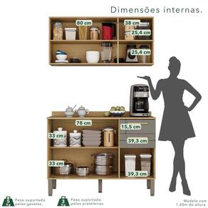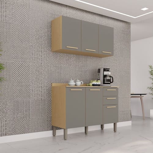Você nunca imaginou que sua Cozinha pudesse ficar tão organizada. Com este Armário de Cozinha Combo Bella 05 o espaço fica ainda mais convidativo e sempre pronto para preparar pratos incríveis, otimizando o espaço para guardar seus utensílios. Confeccionado com materiais de resistência, qualidade e inovação ele é a melhor opção para completar o ambiente, cores modernas que combinam com tudo que escolher. Acabamento da Prateleira: Pintura Escala de Brilho da Prateleira: Brilhante Acabamento da Gaveta: Pintura UV Escala de Brilho da Gaveta: Brilhante Material do Puxador da Gaveta: MDF Acabamento da Porta: Pintura Escala de Brilho da Porta: Brilhante Material do Puxador da Porta: MDF Acabamento dos Pés: Pintura Acompanha Tampo: Sim Altura dos Pés: 16 cm Altura Máxima dos Pés: 16.0000 Ambiente Principal: Cozinha Balcão Suporta Pia: Não codigo_ean: 7900288317940 Complexidade da Montagem: Alta: deve ser montado por um montador especializado Cor: Jequitibá/Granizo Cor do Produto: Jequitibá/Granizo Escala de Brilho: Semi-Fosco Gaveta com Chave: Não Itens Inclusos: 1 Cozinha Compacta, Manual de Montagem e Kit Ferragens. Linha ou Coleção: Bella Manual de Montagem e Instalação: https://product-hub-prd.madeiramadeira.com.br/977576010/documents/f508c94e-7b03-49be-be7d-c6ac71a8f89eaae1686689manualvalencia05.pdf Marca: Sallêto Móveis Material da Corrediça: Metálica Material da Dobradiça/Corrediça da Porta: Metálica Material da Gaveta: MDP Material da Porta: MDP Material da Prateleira: MDP Material do Fundo: MDF Material do Tampo: MDP Material dos Pés: Polipropileno Medida de cada item (A x L x P): Armário Aéreo Triplo 54,5cmx120cmx26cm, Balcão 85,5cmx120cmx36,5cm modular: Sim Necessita Montagem: Sim O Balcão Acompanha Pia: Não Origem do Produto: Nacional Pés Reguláveis: Sim Peso: 44,7 kg Peso Máximo por Gaveta: 5 kg Peso Máximo por Prateleira: 5 kg Possui Pés: 06 Possui Portas: Sim Possui Prateleiras: Sim Possui recorte para Cooktop: Não Possui Rodízio: Não Produto Montado: Sim Recomendações de Uso, Manutenção e Limpeza: Limpar com flanela limpa e seca. Não usar produtos abrasivos. Sapatas Niveladoras: Sim Sistema de Montagem: Parafusos e cavilhas Tamanho Indicado da Pia: Não possui. Tipo de Corrediça da Gaveta: Metálica Telescópica Tipo de Dobradiça da Porta: 35 mm Tipo de Puxador da Gaveta: Externo Tipo de Puxador da Porta: Externo Marca: Não Informado