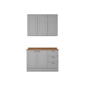 CARACTERÍSTICAS GERAIS: Estilo: Americano Linha: Amy Ambiente Principal: Cozinhas Marca: Casa 812 Origem: Nacional Garantia do Fornecedor: 3 Meses Composição do Kit -AxLxP-: 1 Aéreo 03 Portas 83 x 120 x 32,5 Cm; 1 Balcão Pia 02 Portas e 03 Gavetas 82 x 120 x 51 Cm; 1 Tampo 2,5 x 120 x 53,5 Cm; Itens Inclusos: 01 Cozinha de 02 Peças e instrução de montagem