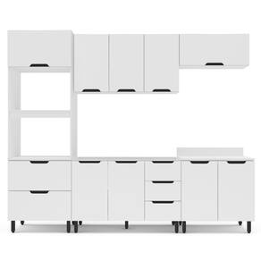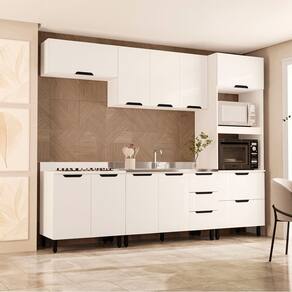 Características: Estrutura MDP Pintura FF/UV 07 Portas Articuladas com Dobradiças Metálicas 03 Portas Basculantes com Pistão à Gás 04 Gavetas com Corrediças Metálicas Puxadores de Plástico Possui Prateleiras com Amplo Espaço Kit com 13 Pés Peso Suportado nas Prateleiras Estruturais: 10kg Distribuídos Peso Suportado nas Prateleiras: 5kg Distribuídos Peso Suportado nas Gavetas: 3kg Distribuídos *NÃO ACOMPANHA TAMPO*