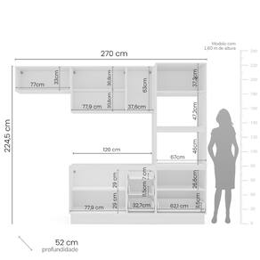 Dimensões: Altura: 224,5 cm Largura: 270 cm Profundidade: 52 cm