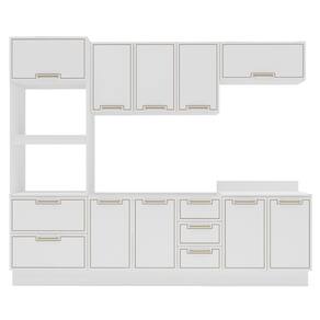 Características: Estrutura MDP Pintura FF/UV 07 Portas com dobradiças metálicas 03 Portas com pistão à gás 04 Gavetas com corrediças telescópicas Puxadores em Alumínio Acabamento usinado Possui prateleiras com amplo espaço Possui Rodapé Peso suportado nas Prateleiras Estruturais: 10kg Peso suportado nas Prateleiras: 5kg Peso suportado nas Gavetas: 3kg *Não acompanha Tampo*
