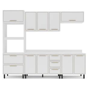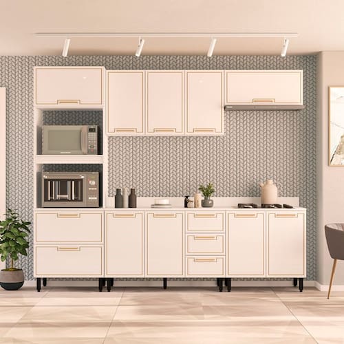 Características: Estrutura MDP Pintura FF/UV 07 Portas com dobradiças metálicas 03 Portas com pistão à gás 04 Gavetas com corrediças telescópicas Puxadores em Alumínio 13 Pés em Plástico Acabamento usinado Possui prateleiras com amplo espaço Peso suportado nas Prateleiras Estruturais: 10kg Peso suportado nas Prateleiras: 5kg Peso suportado nas Gavetas: 3kg *Acompanha Tampo*