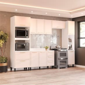 Características: Estrutura MDP Pintura FF/UV 07 Portas com dobradiças metálicas 03 Portas com pistão à gás 04 Gavetas com corrediças telescópicas Puxadores em Alumínio 11 Pés em Plástico Acabamento usinado Possui prateleiras com amplo espaço Peso suportado nas Prateleiras Estruturais: 10kg Peso suportado nas Prateleiras: 5kg Peso suportado nas Gavetas: 3kg *Acompanha Tampo*