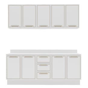 Características: Estrutura MDP Pintura FF/UV 09 Portas com dobradiças metálicas 03 Gavetas com corrediças telescópicas Puxadores em Alumínio Acabamento usinado Possui prateleiras com amplo espaço Possui Rodapé Peso suportado nas Prateleiras Estruturais: 10kg Peso suportado nas Prateleiras: 5kg Peso suportado nas Gavetas: 3kg *Acompanha Tampo*