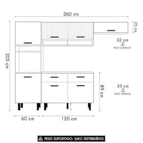 Peso Suportado: 56 Kg distribuídos.