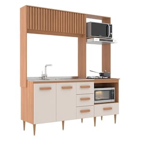 Cozinha Compacta 3 Gavetas 4 Portas Celine Freijó/Off White - Marrom
