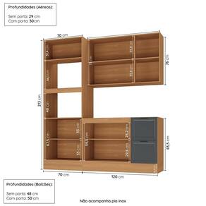 Medida de cada item (A x L x P): Torre Quente: 213cm x 70cm x 50cm; Aéreo triplo: 76cm x 120cm x 31cm; Balcão: 84cm x 120cm x 50cm.