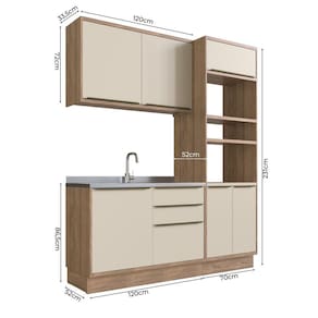 A Cozinha Compacta 3 Peças Viena é composta por peças essenciais para sua cozinha. Com estilo moderno e sofisticado, agrega beleza ao ambiente. Todos os puxadores são em alumínio champanhe e as dobradiças possuem amortecimento, de forma que proporcione resistência e funcionalidade ao produto. Além do mais, todas as portas são finalizadas em BP, que permite que os móveis tenham desenhos exclusivos, acabamentos detalhados e texturas especiais. Acabamento da Prateleira: Pintura Escala de Brilho da Prateleira: Semi-Brilho Acabamento da Gaveta: BP Escala de Brilho da Gaveta: Semi-Brilho Material do Puxador da Gaveta: Cromado Acabamento da Porta: BP Escala de Brilho da Porta: Semi-Brilho Material do Puxador da Porta: Cromado Acabamento dos Pés: Pintura Acompanha Tampo: Não Altura dos Pés: 14,5 cm Altura Máxima dos Pés: 14.5000 Ambiente Principal: Cozinha codigo_ean: 7909903556948 Complexidade da Montagem: Alta: deve ser montado por um montador especializado Cor: Freijó / Cinza Argila Cor do Produto: Freijó / Cinza Argila Cor Interna: Freijó Escala de Brilho: Semi-Brilho Espessura do Material da Estrutura: 15 mm Gaveta com Chave: Não Itens Inclusos: 1 Balcão 120cm, 1 Torre Quente 70cm, 1 Aéreo 120cm e 1 Manual de Montagem Manual de Montagem e Instalação: https://product-hub-prd.madeiramadeira.com.br/883678/documents/007c2bfa-99b6-49fd-be3b-a1d3eab0abc71725432ilovepdfmerged.pdf Material da Dobradiça/Corrediça da Porta: Metálica Material da Gaveta: MDF Material da Porta: MDF Material da Prateleira: MDF Material do Fundo: MDF Material dos Pés: MDF Medida de cada item (A x L x P): Balcão: L 120cm, A 86,5cm, P 52,5cm; Torre Quente: L 70cm, A 231cm, P 52,5cm; Aéreo: L 120cm, A 72cm, P 33,5cm modular: Sim Necessita Montagem: Sim O Balcão Acompanha Pia: Não Origem do Produto: Nacional Pés Reguláveis: Não Peso: 151,85 kg Peso Máximo por Gaveta: 5 kg Peso Máximo por Prateleira: 5 kg Possui Pés: Rodapé Possui Portas: Sim Possui Prateleiras: Sim Possui recorte para Cooktop: Não Possui Rodízio: Não Produto Montado: Sim Recomendações de Uso, Manutenção e Limpeza: Recomenda-se a utilização de pano seco. Sapatas Niveladoras: Sim Sistema de Montagem: Parafuso e Minifix Tamanho Indicado da Pia: 120cm Tamanho Indicado do Tampo: 120cm Tipo de Corrediça da Gaveta: Metálica Telescópica Tipo de Dobradiça da Porta: 35 mm Tipo de Puxador da Gaveta: Externo Tipo de Puxador da Porta: Externo