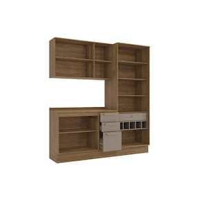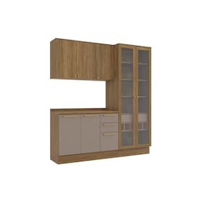 Garanta beleza e qualidade com o Conjunto CB905 da Cozinha Botanic da Kappesberg. Com três peças, em MDP de 1,5cm, são 2,22m de altura, 2m de largura e 52cm de profundidade, se adaptando a todos os espaços. Os módulos facilitam a organização, e com cristaleira com vidro, você terá um espaço único para suas louças. Para um acabamento perfeito, o conjunto acompanha tampo e rodapés, além das ferragens para ser montado suspenso. Com até sete camadas de pintura, a caixaria possui pintura touch na cor nogueira, com a textura dos veios da madeira, enquanto as frentes do balcão, na cor cinza, possui acabamento fosco. Os diferenciais são as dobradiças com amortecimento, as corrediças telescópicas e o LED no aéreo de pia. Os puxadores em alumínio na cor dourada, completam o diferencial.