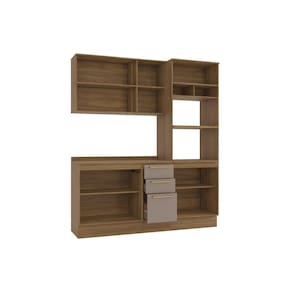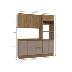 Garanta beleza e qualidade com o Conjunto CB947 da Cozinha Botanic da Kappesberg. Com três peças, em MDP de 1,5cm, são 2,22m de altura, 1,90m de largura e 52cm de profundidade, se adaptando a todos os espaços. Os módulos facilitam a organização, e com kit forno e microondas, garante espaço para eletrodomésticos. Para um acabamento perfeito, o conjunto acompanha tampo e rodapés, além das ferragens para ser montado suspenso. Com até sete camadas de pintura, a caixaria possui pintura touch na cor nogueira, com a textura dos veios da madeira, enquanto as frentes do balcão, na cor cinza, possui acabamento fosco. Os diferenciais são as dobradiças com amortecimento, as corrediças telescópicas e o LED no aéreo de pia. Os puxadores em alumínio na cor dourada, completam o diferencial.