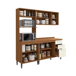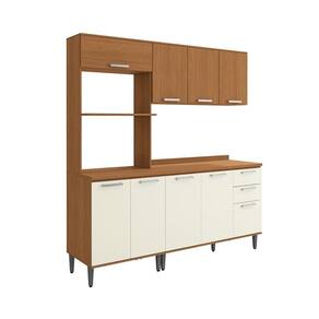 Cozinha Compacta 3 Peças com Torre Quente Linna Canela/Off White - Marrom