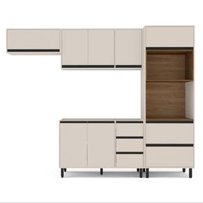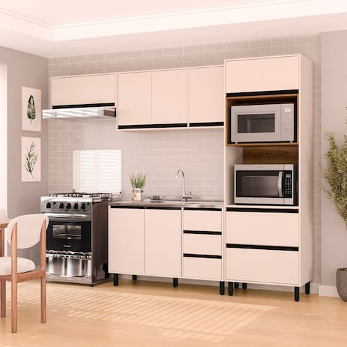 Características: Estrutura MDP Pintura UV 05 Portas com dobradiças metálicas 03 Portas com pistão à gás 04 Gavetas com corrediças telescópicas Puxadores de Plástico 09 pés em plástico Possui prateleiras com amplo espaço Peso suportado nas Prateleiras Estruturais: 10kg Peso suportado nas Prateleiras: 5kg Peso suportado nas Gavetas: 3kg *Não acompanha Tampo*