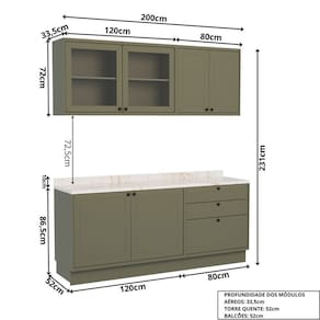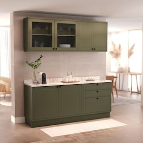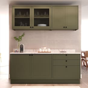 A Cozinha Compacta 4 Peças Sevilha é composta por peças essenciais para sua cozinha. Com estilo moderno e sofisticado, agrega beleza ao ambiente. Todos os puxadores são metálicos e pontuais e as dobradiças possuem amortecimento, de forma que proporcione resistência e funcionalidade ao produto. A Cozinha é produzida 100% em MDF, além de possuir corrediças telescópicas nas gavetas que proporcionam maior abertura e um deslizamento suave e silencioso. Não acompanha tampo. Acabamento da Prateleira: Pintura Escala de Brilho da Prateleira: Semi-Brilho Acabamento da Gaveta: Pintura Escala de Brilho da Gaveta: Semi-Brilho Material do Puxador da Gaveta: Metal Acabamento da Porta: Pintura Escala de Brilho da Porta: Semi-Brilho Material do Puxador da Porta: Metal Acompanha Rodapé Decorativo: Não Acompanha Tampo: Não Ambiente Principal: Cozinha Balcão Suporta Pia: Sim codigo_ean: 7900288121165 Complexidade da Montagem: Alta: deve ser montado por um montador especializado Cor: Verde Hill Cor do Produto: Verde Hill Cor Interna: Verde Hill Escala de Brilho: Semi-Brilho Gaveta com Chave: Não Itens Inclusos: 1 Cozinha Compacta, Manual de Montagem e Kit Ferragens Linha ou Coleção: Sevilha Manual de Montagem e Instalação: https://product-hub-prd.madeiramadeira.com.br/624581623/documents/41525bdc-724c-4341-bae2-e2aedf5a23e72854755489017447249692639.pdf Marca: Herval Material da Dobradiça/Corrediça da Porta: Metálica Material da Gaveta: MDF Material da Porta: MDF Material da Prateleira: MDF Material do Fundo: mdf Medida de cada item (A x L x P): Balcão: L 120cm x A 86,5cm x P 52cm; Aéreo: L 120cm x A 72cm x P 33,5cm; Balcão: L 80cm x A 86,5cm x P 52cm; Aéreo: L 80cm x A 72cm x P 33,5cm; modular: Sim Necessita Montagem: Sim O Balcão Acompanha Pia: Não Origem do Produto: Nacional Peso: 131,151 kg Peso Máximo por Gaveta: 5 kg Peso Máximo por Prateleira: 5 kg Possui Pés: Não Possui Portas: Sim Possui Prateleiras: Sim Possui recorte para Cooktop: Não Possui Vidro: Sim Produto Montado: Sim Recomendações de Uso, Manutenção e Limpeza: Recomenda-se a utilização de pano seco. Sistema de Montagem: Parafuso e Minifix Suporta Até (kg): 30 kg Tamanho Indicado da Pia: 120cm Tamanho Indicado do Tampo: 120cm, 80cm Tamanho Indicado do Tampo ou Pia: 120cm Tipo de Corrediça da Gaveta: Metálica Telescópica Tipo de Dobradiça da Porta: 35 mm Tipo de Puxador da Gaveta: Externo Tipo de Puxador da Porta: Externo