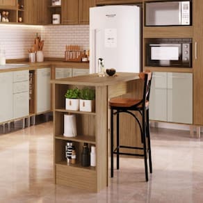 1x Bancada de Cozinha Gaia Móveis Marromlle Largura: 92,5 cm Altura: 128,6 cm Peso: 25,5 kg Profundidade: 52,5 cm Necessita Montagem: Sim