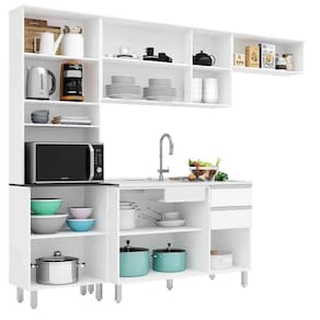 A Cozinha Compacta 9 Portas 2 Gavetas com balcão 1,20m para pia Paris da Poliman Móveis é ideal para quem deseja elegância e praticidade na cozinha, produto com altura diferenciada e profundidade ideal. Composta por paneleiro duplo com portas de bater e prateleiras, nicho organizador decorativo e espaço para micro-ondas, além de contar com um amplo armário aéreo triplo e armário aéreo 1 porta basculante com pistão a gás para melhor aproveitamento de espaço que pode ser sobre geladeira ou fogão.