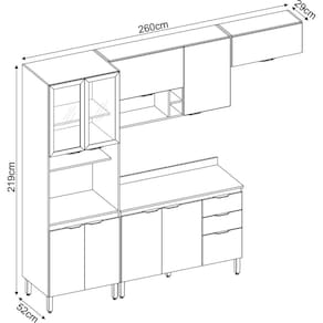 Dimensões: Altura: 219 cm Largura: 260 cm Profundidade: 52 cm Peso: 117,85 kg