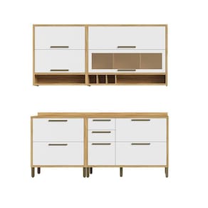 Cozinha compacta 100% MDF, pensada para ambientes menores, oferecendo o máximo de funcionalidade. Composta por 4 peças com divisões projetadas para uma perfeita organização. Possui 2 armários aéreos de 80cm e 120cm com 4 portas basculantes, mini adega e nicho, e 2 Balcões de 80cm e 120cm com 3 portas basculantes e 4 gavetas, essa proposta pode ser montada de forma individual se adequando da melhor maneira ao seu espaço. Os balcões acompanham tampo de 25mm. Possui vidro reflecta em 1 das portas superiores, que ajuda na luminosidade e traz ainda mais beleza.