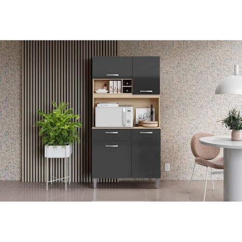 Cozinha Compacta 4 Portas 1 Gaveta Roma Avena Grafite - Aramóveis
