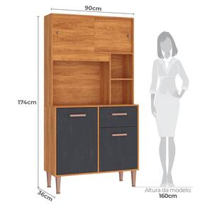 - Móvel e portas superiores na cor Manchester, Gaveta e portas inferiores na cor Champagne