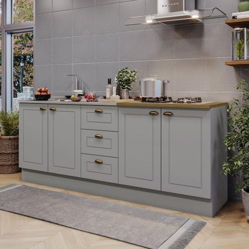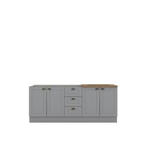 Itens Inclusos: Balcão Pia 03 Gavetas 02 Pts 82x120x51cm sem Tampo, Balcão 02 Portas 82x80x51cm com Tampo para Cooktop, Manual de Montagem, Kit Ferragens