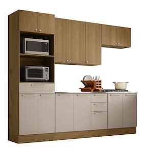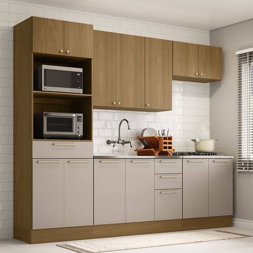 Ambiente composto por: - 1 Paneleiro 70cm 4 Portas 1 Gaveta Com Nicho Micro-ondas Elegance Luciane Móveis - 1 Armário Aéreo 120cm 3 Portas Elegance Luciane Móveis - 1 Armário Aéreo Geladeira 80cm 2 Portas Elegance Luciane Móveis - 1 Balcão de Cozinha para Pia 120cm 2 Portas e 3 Gavetas Sem Tampo Elegance Luciane Móveis - 1 Balcão de Cozinha 80cm 2 Portas Com Tampo Elegance Luciane Móveis