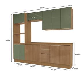 Medida de cada item (A x L x P): Kit Forno: 230x70x52cm/ Aéreo:80,5x120x35,5cm/Aéreo: 32,5x80x35,5cm/ Balcão:88x120x52cm/ Balcão:88x80x52cm/ Tampo:2,5x120x52cm/ Tampo: 2,5x80x52cm