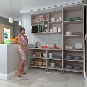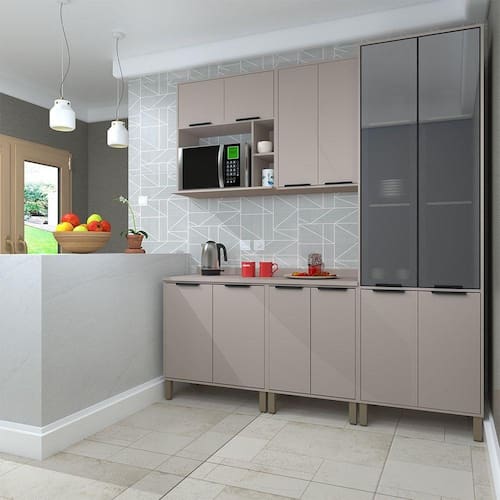 Desenvolvida com materiais de excelencia, a Cozinha Stylo oferece excelente distribuicao de espaco interno. E estruturada em 100 MDP e possui dobradicas slow motion com amortecedor incorporado para fechamento suave das portas. Conta com puxadores tipo aste em Aluminio Preto dando um toque especial de classe e elegancia.