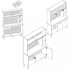 Caracteristicas: 1 Gaveta 1 Prateleira 5 Portas sendo duas de correr 5 Pes regulaveis Corredicas Slim 300mm Estrutura em MDP Dobradicas metal 26mm Puxadores 192 mm cromado Sistema de montagem parafusos, cavilhas e minifix