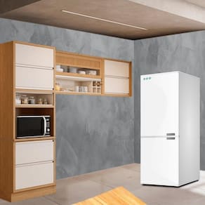 A Cozinha de Madeira Off White da linha Lisboa é uma ótima opção para deixar seu ambiente moderno, organizado e bem aproveitado.