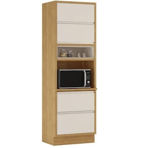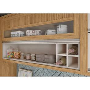 Ela possui um paneleiro com espaço para micro-ondas ou forno, nichos decorativos e prateleiras bem distribuídas para acomodar seus utensílios de cozinha. Já os puxadores exclusivos de aço são uma combinação perfeita entre beleza e resistência. Seu tampo de MDF é resistente a temperaturas de até 120°C e o rodapé em PVC é resistente à água.
