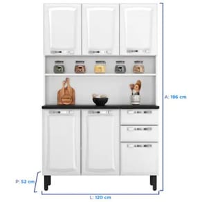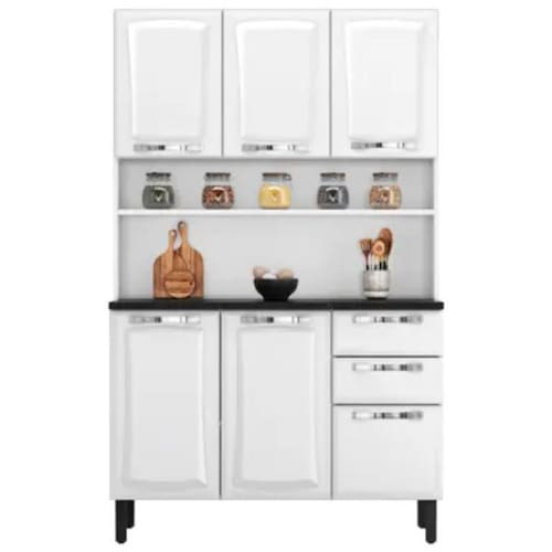 Com 6 portas e 2 gavetas, ela proporciona o armazenamento necessário para utensílios, alimentos e outros itens essenciais. O destaque fica por conta das gavetas com corrediças telescópicas, que permitem uma abertura suave e silenciosa, garantindo mais conforto no uso diário. Além disso, as gavetas possuem trava de segurança, oferecendo mais estabilidade e proteção para o armazenamento.