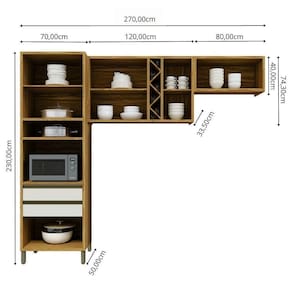 Para a organização dos seus utensílios e mantimentos, esta cozinha conta com 2 prateleiras espaçosas, permitindo que você mantenha tudo em ordem e ao seu alcance.