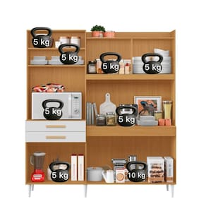 Caracteristicas: 2 Gavetas com corredicas de metal 1 Nicho para forno ou micro-ondas 6 Portas com dobradicas metalicas Acabamento em verniz alto-brilho Acompanha tampo Estrutura MDP/MDF 03,12 e 15mm Puxadores de MDF