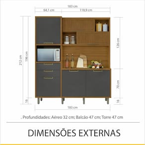 Um novo conceito de cozinha Compacta, a Cozinha Compacta Loft Imperatriz Nesher proporciona um design contemporâneo sem necessidade de instalação em paredes, ideal para jovens casais. Versátil, pode ser utilizado em areas gourmet, varandas, escritórios e cozinhas. Projetado para proporcionar praticidade e funcionalidade no uso diário, produzida com matérias prima de alto nível, ferragens diferenciadas e 100% MDF. Acabamento da Prateleira: Impressão Escala de Brilho da Prateleira: Semi-Brilho Acabamento da Gaveta: Impressão Escala de Brilho da Gaveta: Semi-Brilho Material do Puxador da Gaveta: Alumínio Acabamento da Porta: Impressão Escala de Brilho da Porta: Semi-Brilho Material do Puxador da Porta: Alumínio Acabamento dos Pés: Pintura Acompanha Tampo: Sim Altura dos Pés: 16 cm Altura Máxima dos Pés: 1600000000.0000 Ambiente Principal: Cozinha codigo_ean: 7909903043134 Complexidade da Montagem: Média: pode ser montado por mais de uma pessoa e/ou necessite de maior conhecimento para montagem Cor: Amadeirado Freijó/Grafite Cor do Produto: Amadeirado Freijó/Grafite Cor Flex: Não Cor Interna: Amadeirado Freijó Escala de Brilho: Semi-Brilho Gaveta com Chave: Não Itens Inclusos: 1 Cozinha Compacta e Manual de Montagem Linha ou Coleção: Imperatriz - Nesher Manual de Especificação Técnica: https://product-hub-prd.madeiramadeira.com.br/723359/documents/7981c3fb-448c-476a-872c-e1e3b1c26523loftnesherimperatriz100mdf.pdf Manual de Montagem e Instalação: https://product-hub-prd.madeiramadeira.com.br/723359/documents/0bd77b42-8b24-460a-a0a9-e672b272338eloftnesherimperatriz100mdf.pdf Material da Dobradiça/Corrediça da Porta: Metálica Material da Gaveta: MDF Material da Porta: MDF Material da Prateleira: MDF Material do Fundo: Duratree Material do Tampo: MDF Material dos Pés: Polipropileno Montagem Flex: Não Necessita Montagem: Sim O Balcão Acompanha Pia: Não Origem do Produto: Nacional Pés Reguláveis: Sim Peso: 124 kg Peso Máximo por Gaveta: 5 kg Peso Máximo por Prateleira: 7,5 kg Possui Pés: 08 Possui Portas: Sim Possui Prateleiras: Sim Possui recorte para Cooktop: Não Possui Rodízio: Não Produto Montado: Sim Recomendações de Uso, Manutenção e Limpeza: Pano macio levemente umedecido e na sequência pano macio seco. Sapatas Niveladoras: Sim Sistema de Montagem: Parafusos, cavilhas e minifix Tamanho Indicado da Pia: NA Tamanho Indicado do Tampo: NA Tamanho Indicado do Tampo ou Pia: NA Tipo de Corrediça da Gaveta: Metálica Telescópica Tipo de Dobradiça/Corrediça da Porta: 35 mm Tipo de Puxador da Gaveta: Embutido Tipo de Puxador da Porta: Embutido Ean: 7909903043134