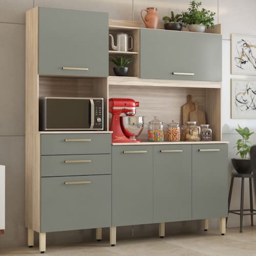 A Cozinha Compacta Select, compõe com 6 portas, sendo uma superior com pistão a gás e duas amplas gavetas com corrediça metálica, 3 prateleiras internas e ainda possui pés reguláveis. Com este armário a sua cozinha vai ficar mais linda e aconchegante.