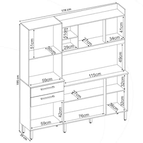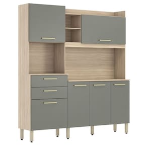 Características Material: MDP 6 Portas 2 Gavetas 3 Prateleiras 2 Nichos Espaço para Forno ou Micro-ondas Pés com regulagem de altura