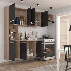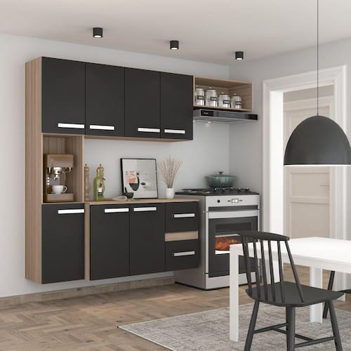 O(a) Cozinha Compacta 7 Portas 2 Gavetas Suspensa Armário e Balcão Anita Teka/Grafite - Pnr Móveis é produzido em MDP, e possui um grau de dificuldade de montagem: Médio.