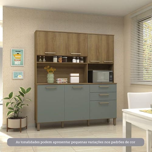 Informacoes Complementares: Tampo 15mm. Fundos em HDF 3mm. Permite o uso de forno ou micro-ondas. ATENCAO: Na utilizacao de FORNO ELETRICO GAS e obrigatoria a retirada do fundo risco de super aquecimento. As dimensoes maximas do forno devem respeitar a margem de respiro, necessitando folga de 5cm entre forno e laterais do movel.