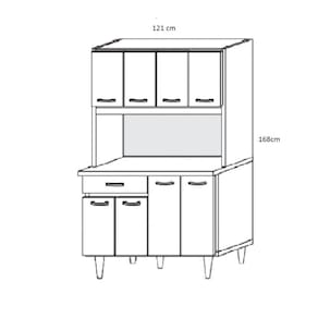 Cozinha Compacta Cleo com 8 portas proporciona amplo espaço interno, resistente e feito com materiais de qualidade, ela deixará tudo no lugar certo, mas sem abrir mão do estilo, do charme e do bom gosto. Deixe seu lar arrumado e moderno.