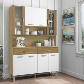 A Cozinha 8 Portas Golden é produzido em MDP com portas e gavetas de 15 mm, matéria prima que respeita o meio ambiente. São oito portas, sendo duas portas superiores com vidro e duas amplas gavetas. Nas portas e gavetas são utilizadas corrediças e dobradiças metálicas para garantir a suavidade e segurança no abrir e fechar. Possui excelente aproveitamento no espaço interno, contando com prateleiras e nichos para pequenos objetos ou decoração. Pequeno tampo que se torna uma exclente bancada para eletro portáteis ou outros utensílios da cozinha. Pés em plástico resistente -polipropileno- . Puxadores em plástico resistente -poliestireno- acabamento cinza . Padrões de cores modernas que combinam e embelezam sua cozinha.