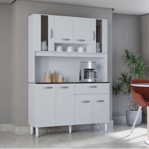 Características: 1 Gaveta 8 Portas sendo 2 com Vidro 1 Nicho Acabamento em Pintura U.V Corrediça metálica Dobradiças metálicas Estrutura em MDP 12 mm Pés de Plástico Puxadores de Plástico