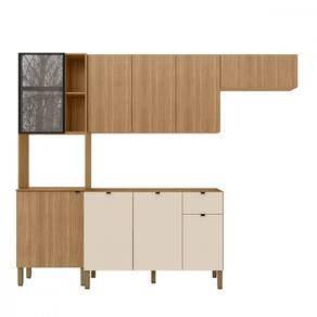 Compõe a cozinha 1 Paneleiro 2 Portas com Nicho 1 Armário Aéreo 3 Portas 1 Armário 1 Porta 1 Balcão 3 Portas 1 Gaveta